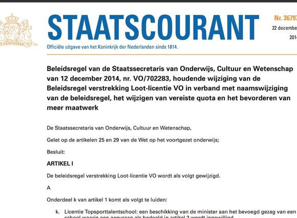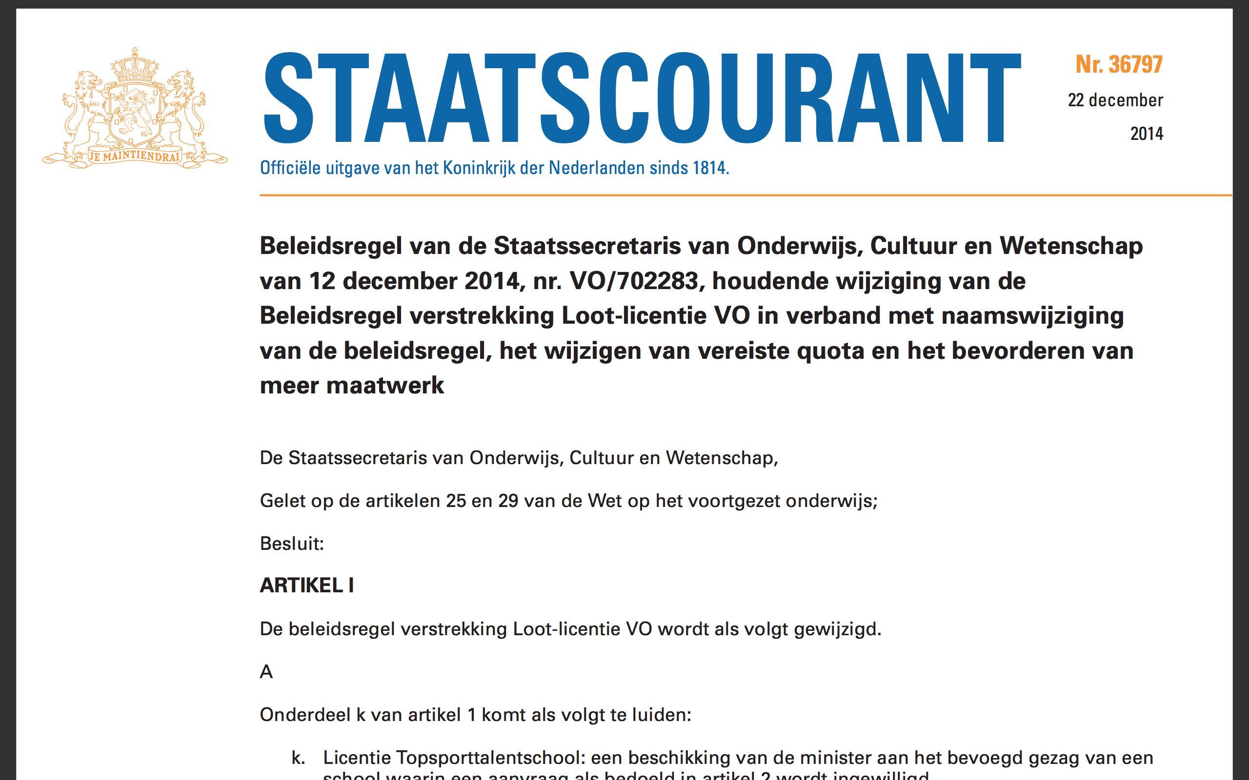 Op 22 dec. 2014 werd de aangepaste beleidsregel "verstrekking LOOT licentie" gepubliceerd in de Staatscourant.