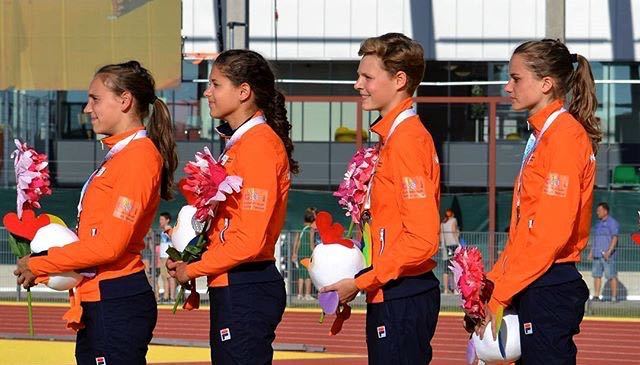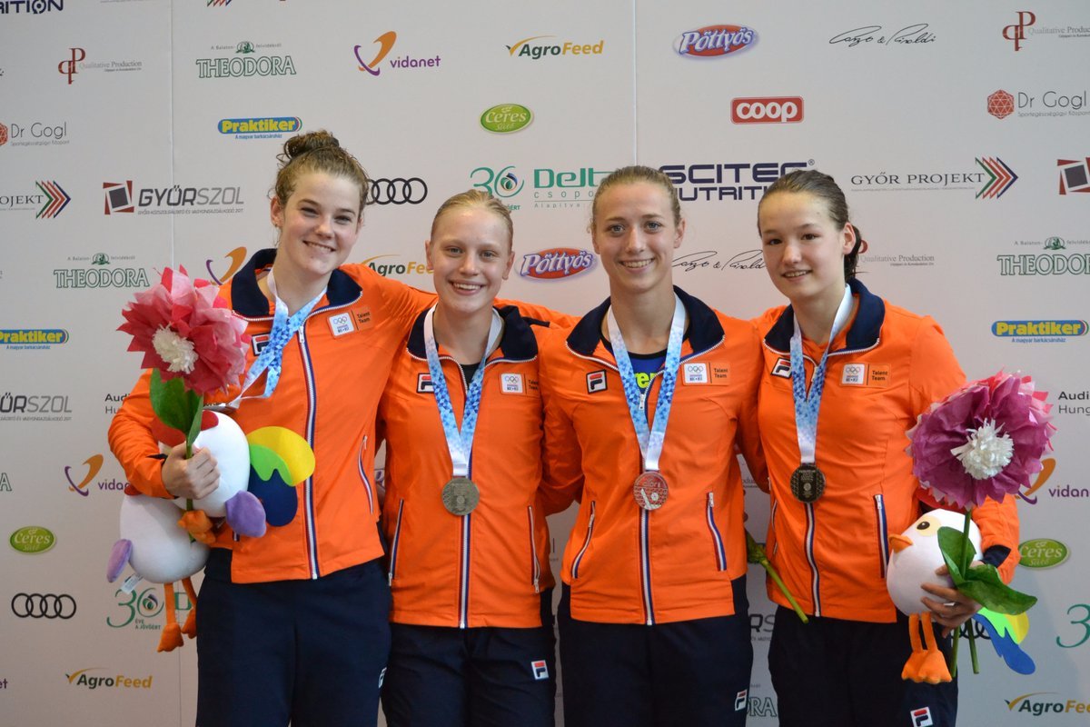 - Nienke Jonk (*21-01-2002) en Elise Tanis (*24-04-2002), beide leerlingen van Topsport Talentschool Sint-Joriscollege in Eindhoven en Imani de Jong (*28-05-2002), leerlinge van Topsport Talentschool Calandcollege in Amsterdam, behaalden bij het onderdeel estafettezwemmen, zilver