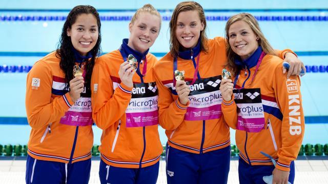 De Nederlandse zwemsters wisten hun Europese titel op de 4x100 meter maandag 16 mei 2016 goed in perspectief te plaatsen.
