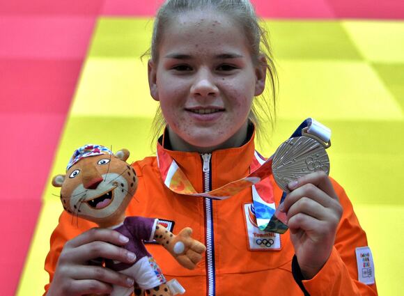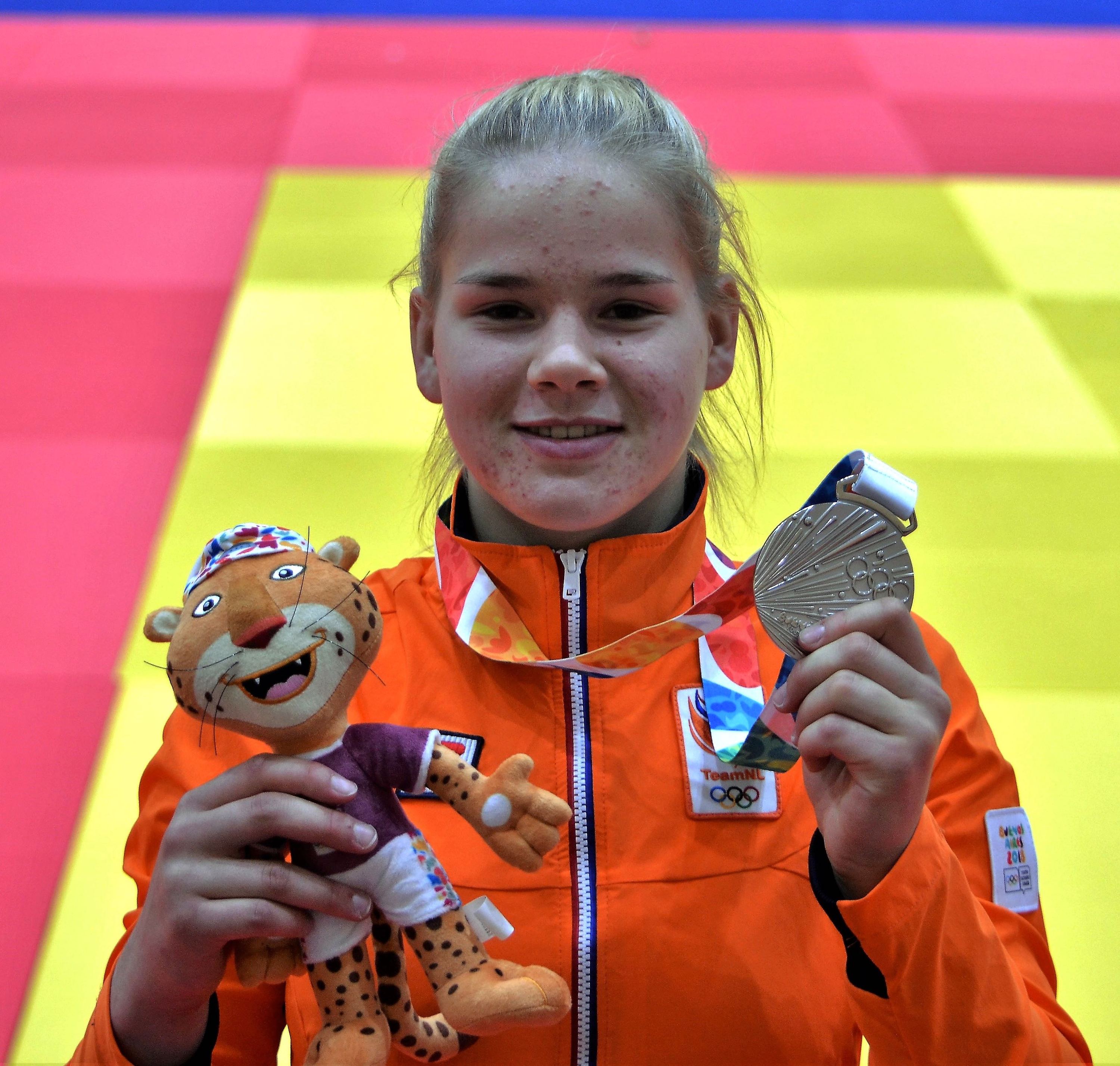 Marin Visser, oud-leerlinge van Topsport Talentschool Groningen, maakt haar droom meer dan waar, door op de YOG in Buenos Aires bij de team-pursuit judo ZILVER te winnen. (Foto's, film LOOT)