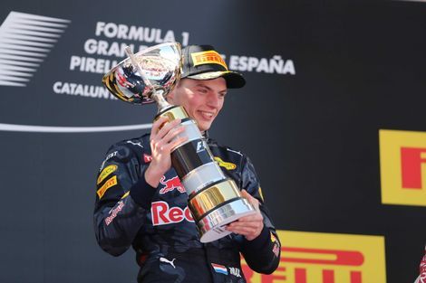 Verstappens vader Jos Verstappen was in 1994 de laatste Nederlander die op een Formule 1-podium stond. Hij werd derde bij de Grote Prijs van België. En nu zag hij met eigen ogen hoe zijn zoon stond te stralen op het podium in Barcelona, tussen Ferrari-coureurs Sebastian Vettel en Kimi Räikkönen. De podiumplek maakte van de eerste race van de Nederlander voor topteam Red Bull meteen een daverend succes. (bron Volkskrant en foto AP)